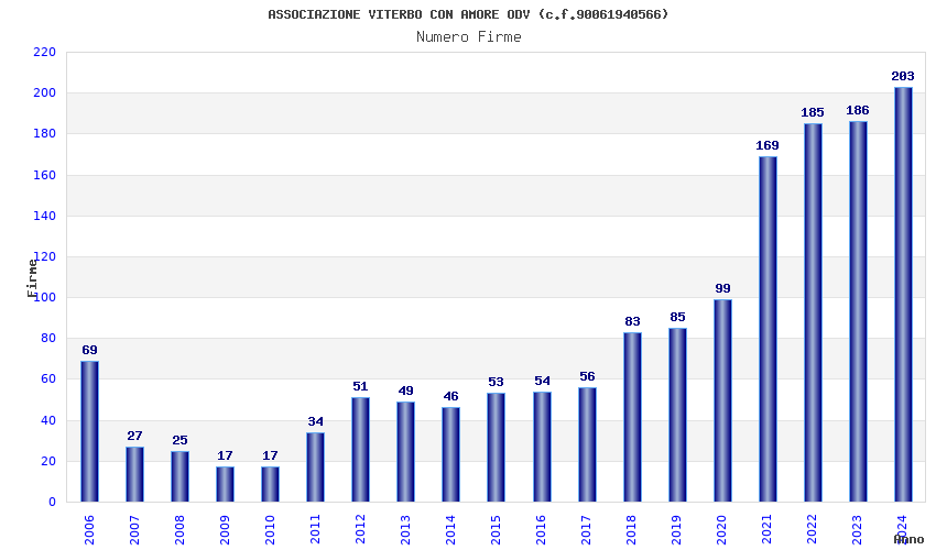 | 2024 | 203 | 8.493,94 | 41,84 | 6.008 | 807 | 19 | 11 |