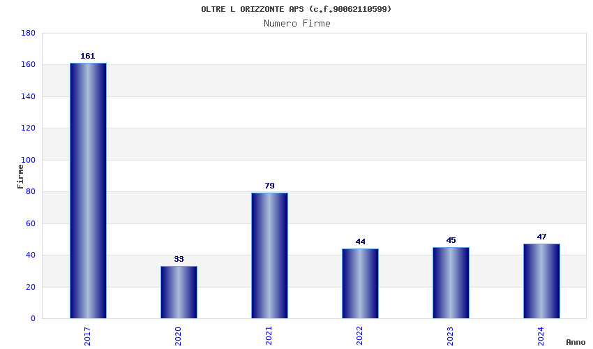| Anno | Firme | Importi | Media | Naz. | Reg. | Prov. | Comu. |