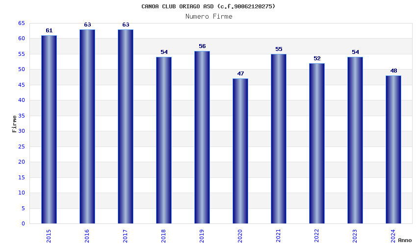 | 2015 | 61 | 2.009,37 | 32,94 | 21.803 | 2.058 | 301 | 10 |