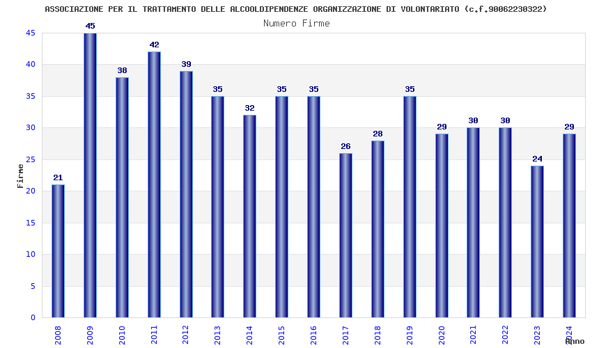| Anno | Firme | Importi | Media | Naz. | Reg. | Prov. | Comu. |