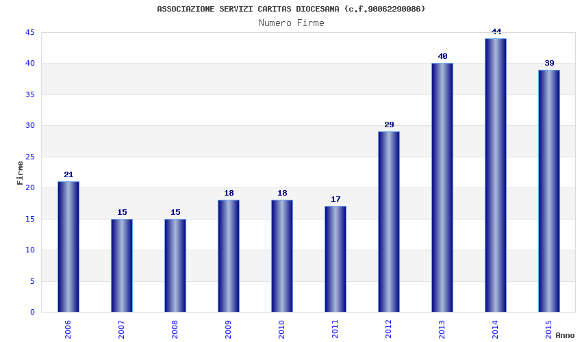 | Anno | Firme | Importi | Media | Naz. | Reg. | Prov. | Comu. |