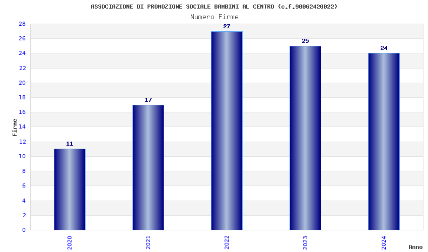 | Anno | Firme | Importi | Media | Naz. | Reg. | Prov. | Comu. |
