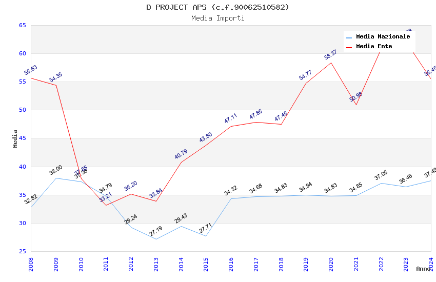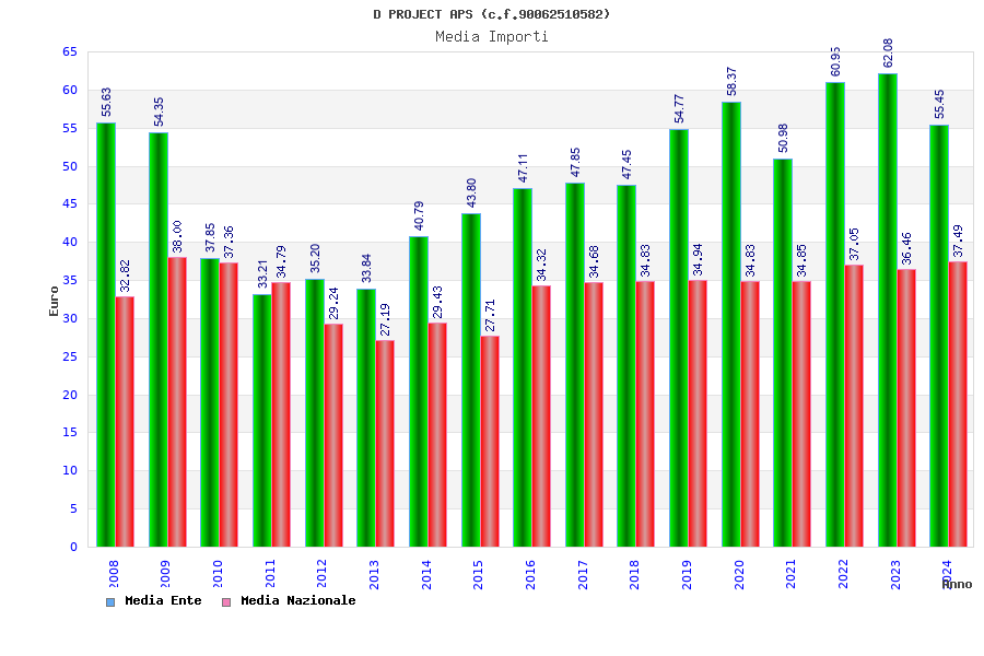| Anno | Firme | Importi | Media | Naz. | Reg. | Prov. | Comu. |