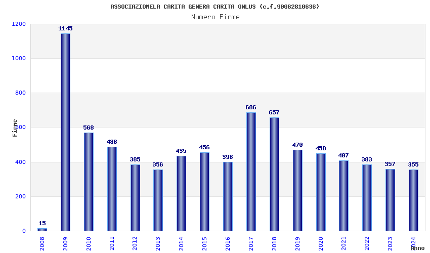 | Anno | Firme | Importi | Media | Naz. | Reg. | Prov. | Comu. |