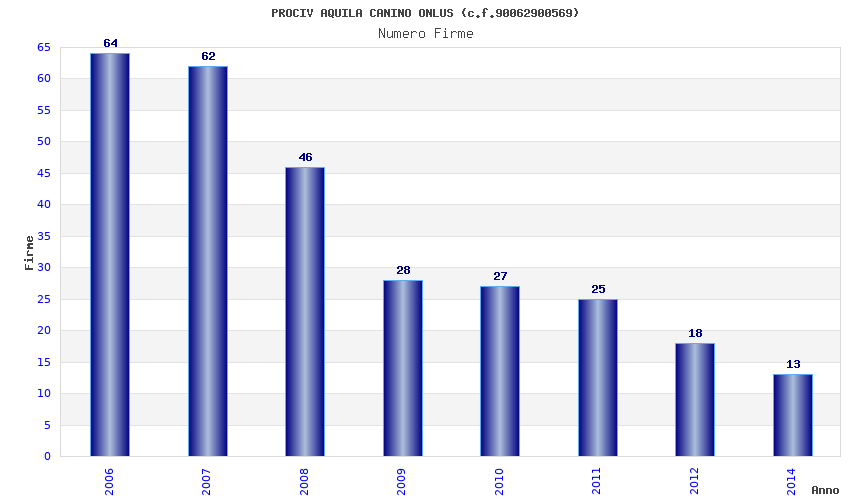 | Anno | Firme | Importi | Media | Naz. | Reg. | Prov. | Comu. |