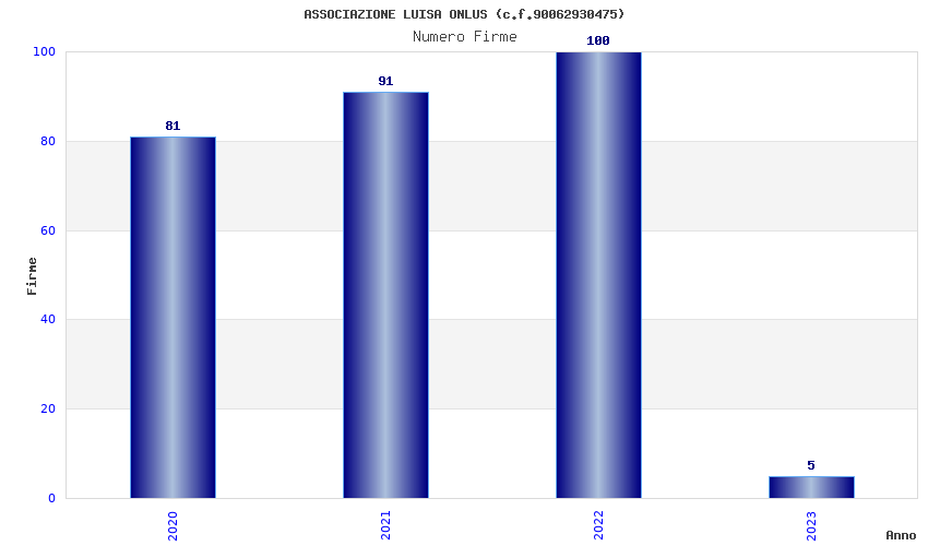 | Anno | Firme | Importi | Media | Naz. | Reg. | Prov. | Comu. |