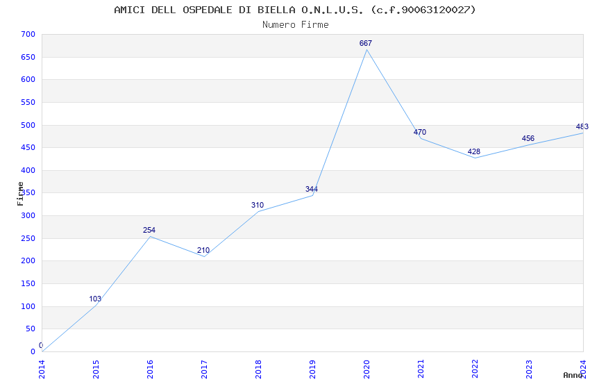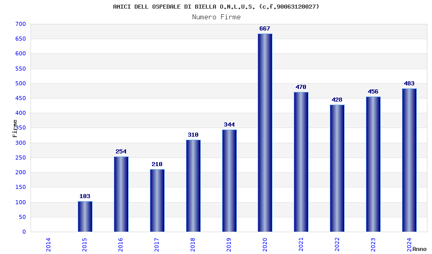 | Anno | Firme | Importi | Media | Naz. | Reg. | Prov. | Comu. |