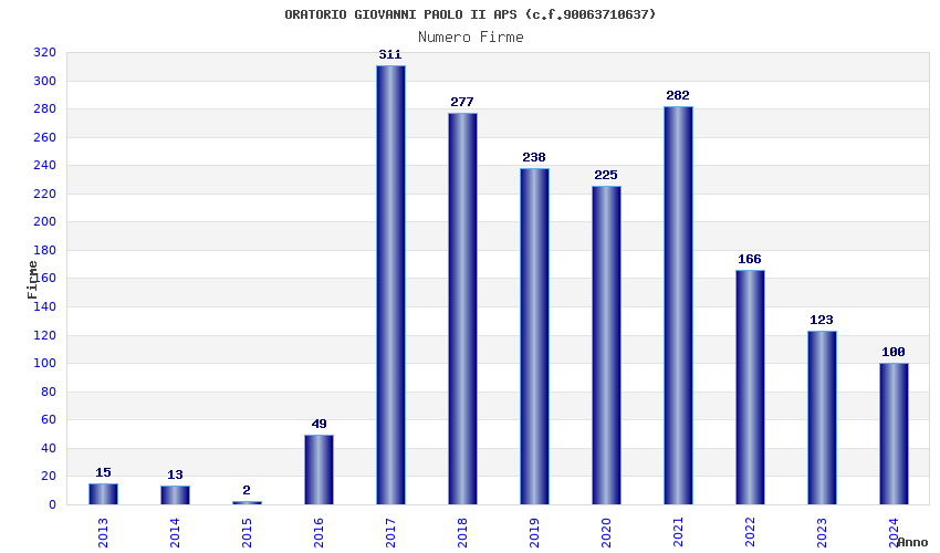 | Anno | Firme | Importi | Media | Naz. | Reg. | Prov. | Comu. |