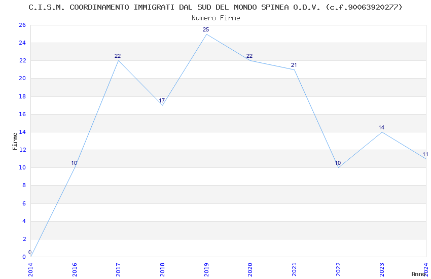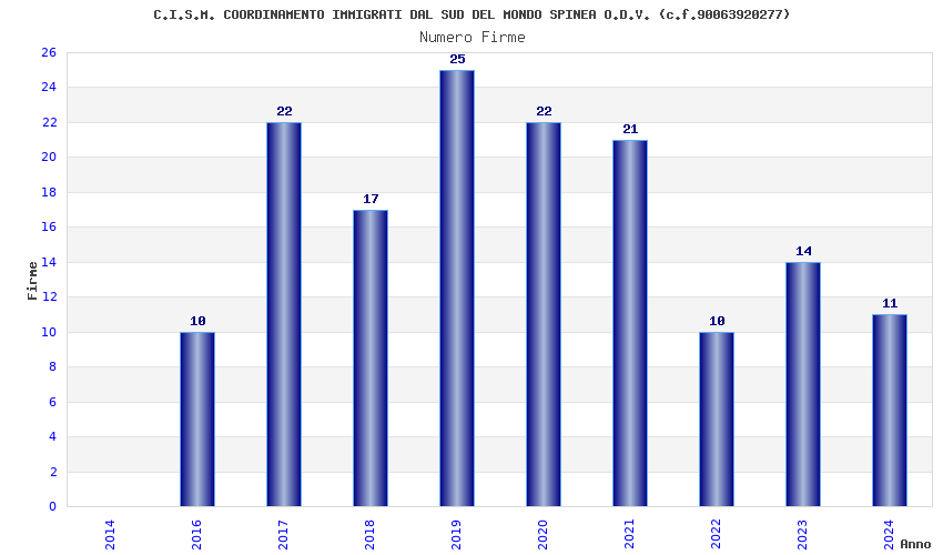 | Anno | Firme | Importi | Media | Naz. | Reg. | Prov. | Comu. |