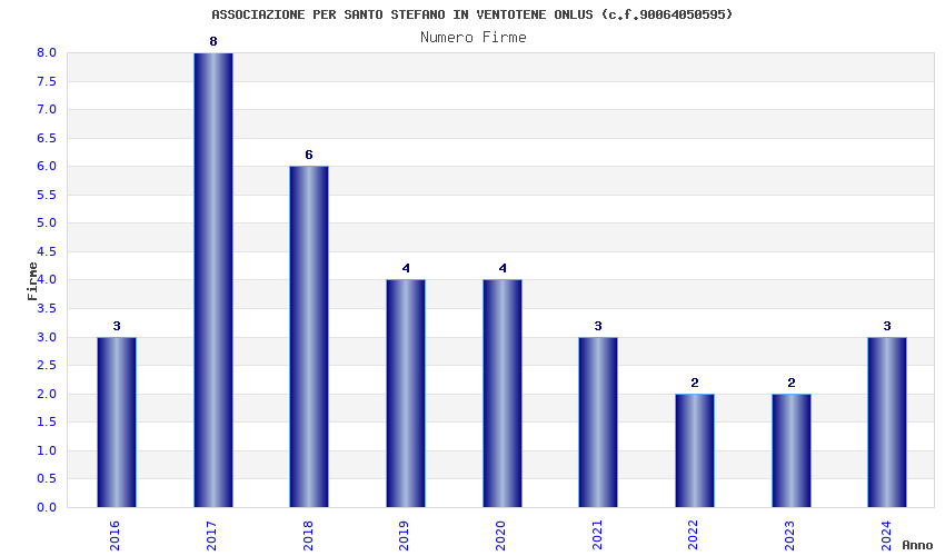 | Anno | Firme | Importi | Media | Naz. | Reg. | Prov. | Comu. |