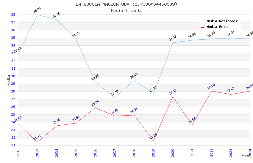 | Anno | Firme | Importi | Media | Naz. | Reg. | Prov. | Comu. |