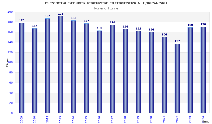 | Anno | Firme | Importi | Media | Naz. | Reg. | Prov. | Comu. |