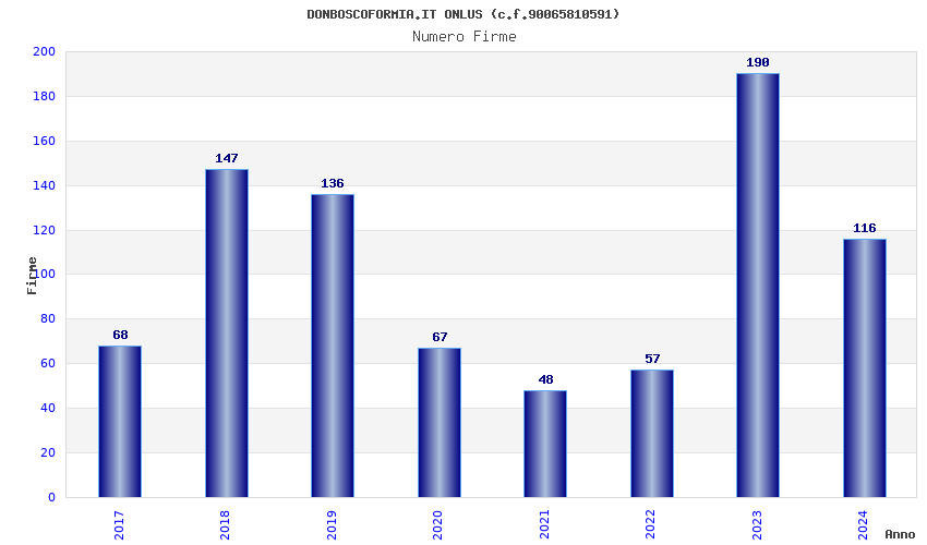 | Anno | Firme | Importi | Media | Naz. | Reg. | Prov. | Comu. |