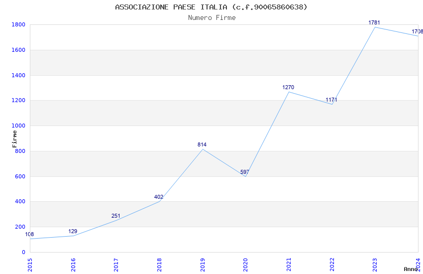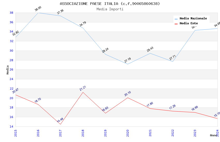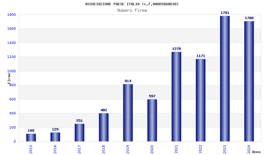 | Anno | Firme | Importi | Media | Naz. | Reg. | Prov. | Comu. |