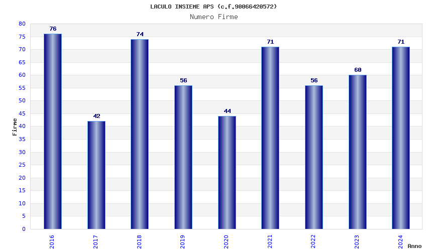 | Anno | Firme | Importi | Media | Naz. | Reg. | Prov. | Comu. |