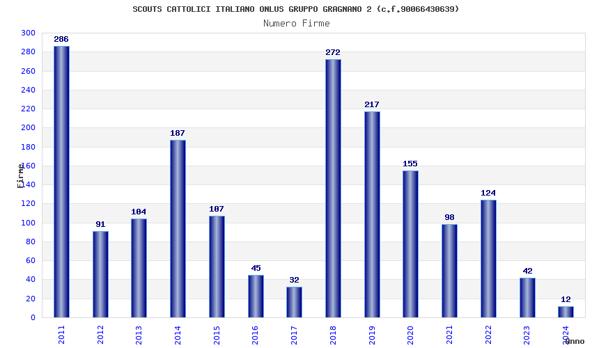 | Anno | Firme | Importi | Media | Naz. | Reg. | Prov. | Comu. |