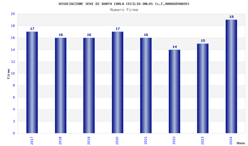 | Anno | Firme | Importi | Media | Naz. | Reg. | Prov. | Comu. |