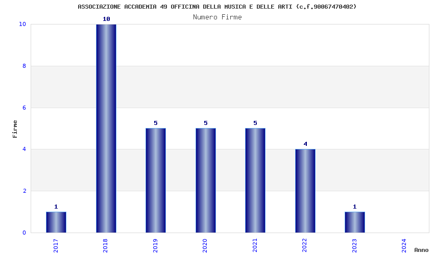 | Anno | Firme | Importi | Media | Naz. | Reg. | Prov. | Comu. |