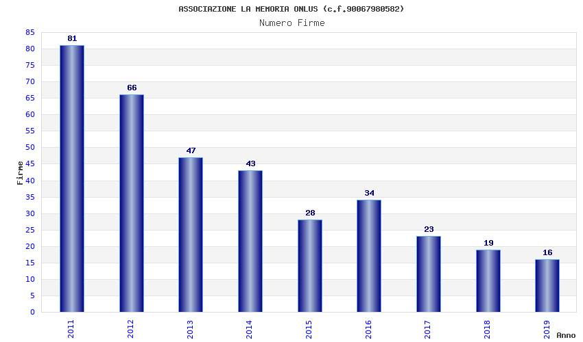 | Anno | Firme | Importi | Media | Naz. | Reg. | Prov. | Comu. |