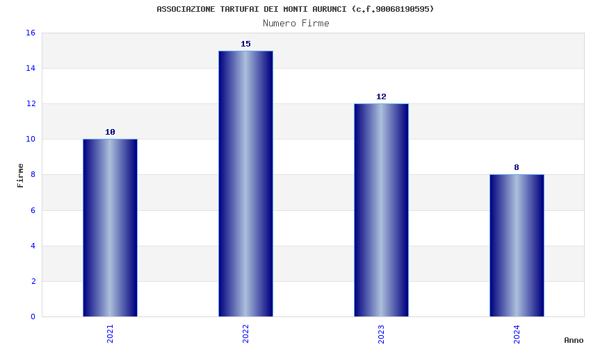 | Anno | Firme | Importi | Media | Naz. | Reg. | Prov. | Comu. |
