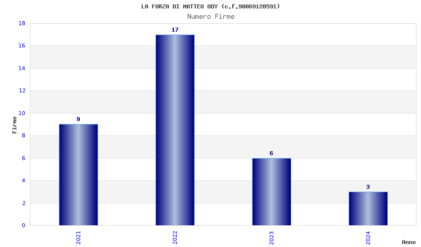 | Anno | Firme | Importi | Media | Naz. | Reg. | Prov. | Comu. |