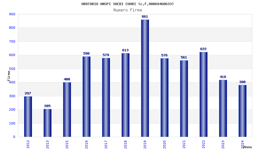 | Anno | Firme | Importi | Media | Naz. | Reg. | Prov. | Comu. |