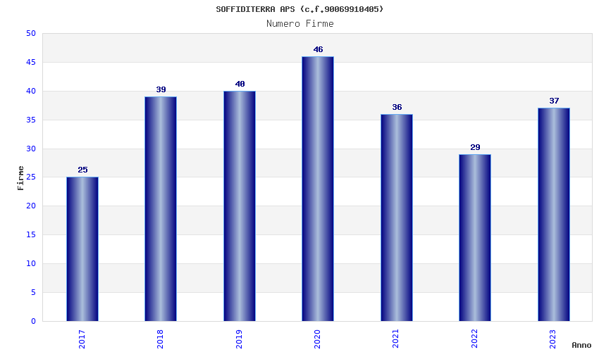 | Anno | Firme | Importi | Media | Naz. | Reg. | Prov. | Comu. |