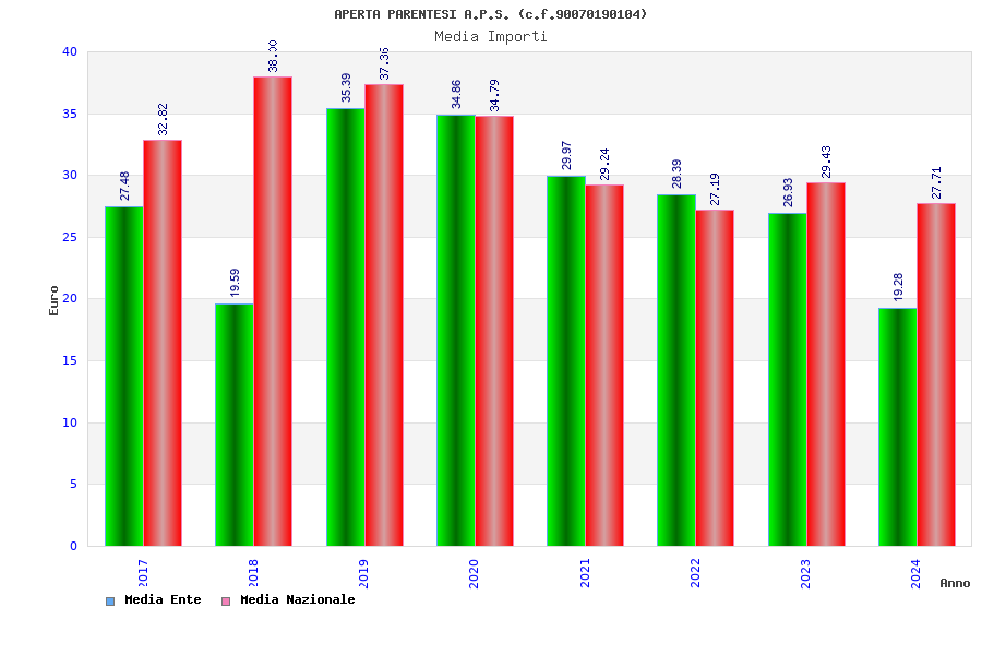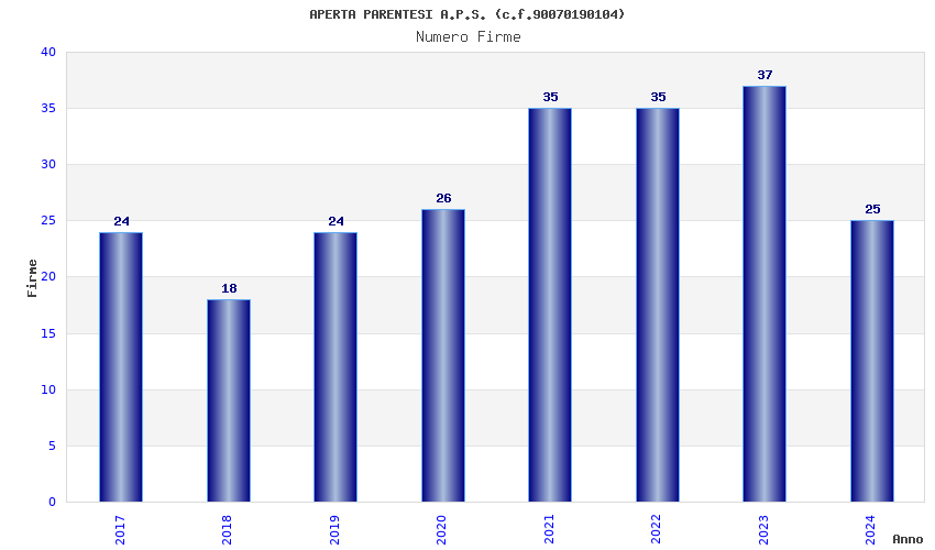 | Anno | Firme | Importi | Media | Naz. | Reg. | Prov. | Comu. |