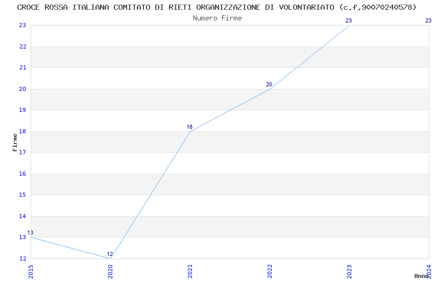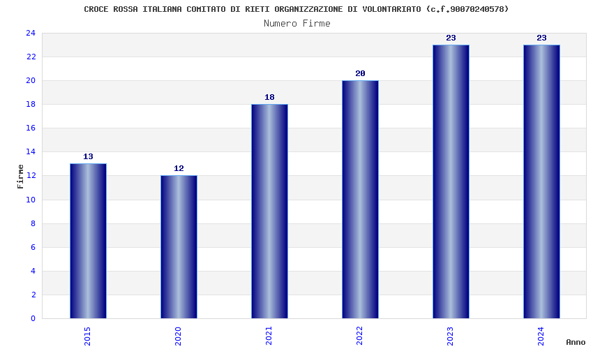 | Anno | Firme | Importi | Media | Naz. | Reg. | Prov. | Comu. |