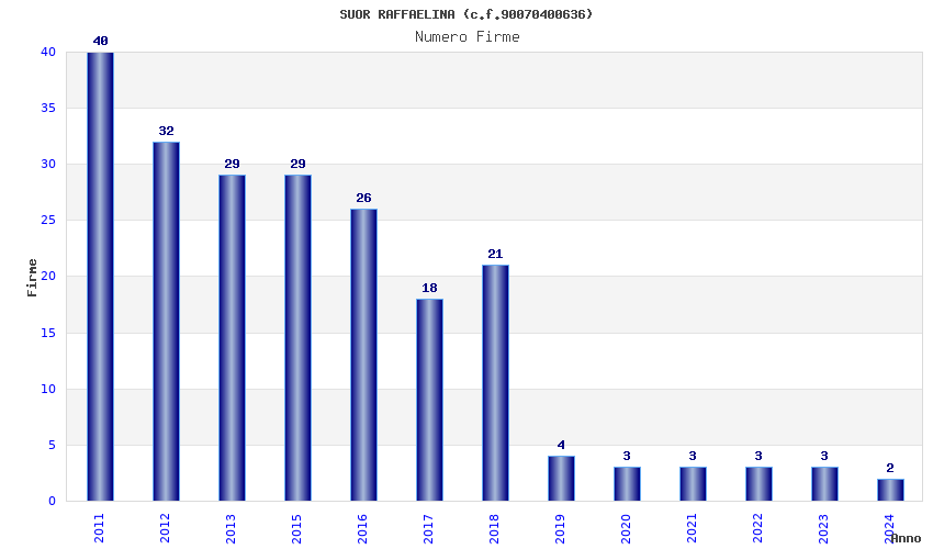 | Anno | Firme | Importi | Media | Naz. | Reg. | Prov. | Comu. |