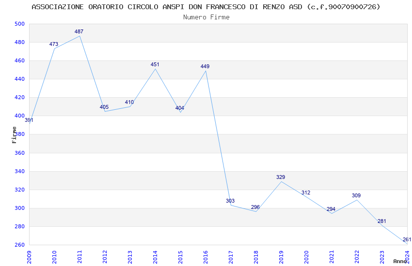 | 2016 | 449 | 8.203,01 | 18,27 | 6.430 | 279 | 23 | 6 |
