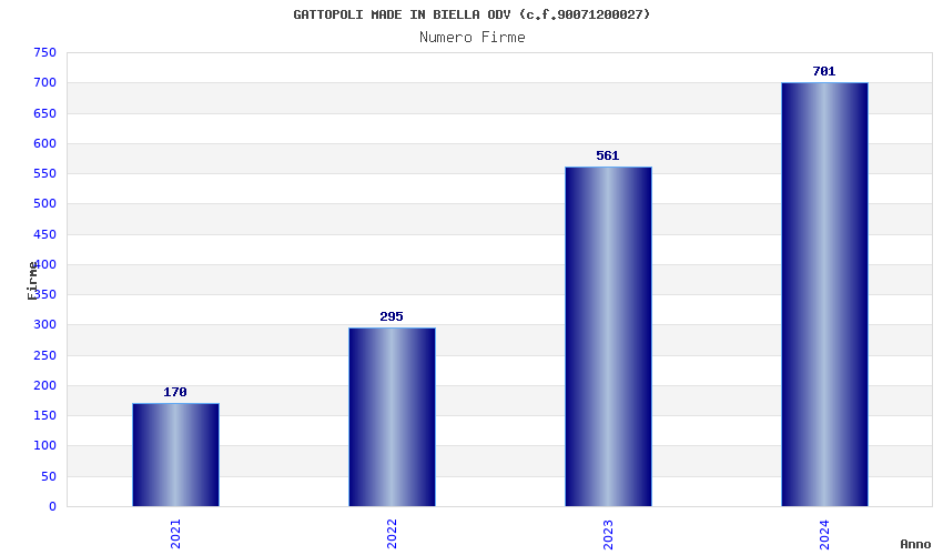 | Anno | Firme | Importi | Media | Naz. | Reg. | Prov. | Comu. |