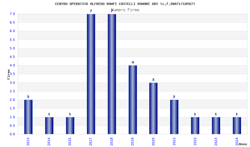 | Anno | Firme | Importi | Media | Naz. | Reg. | Prov. | Comu. |