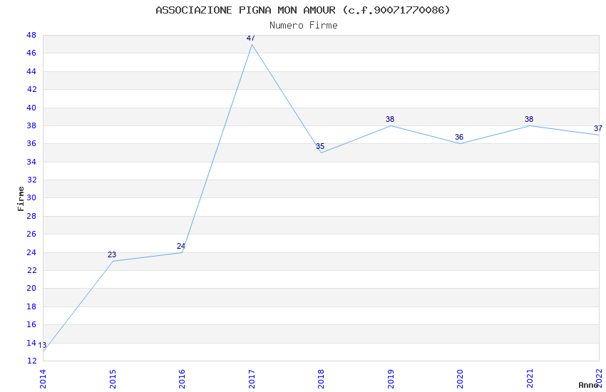 | 2022 | 37 | 2.052,17 | 55,46 | 22.671 | 560 | 51 | 11 |