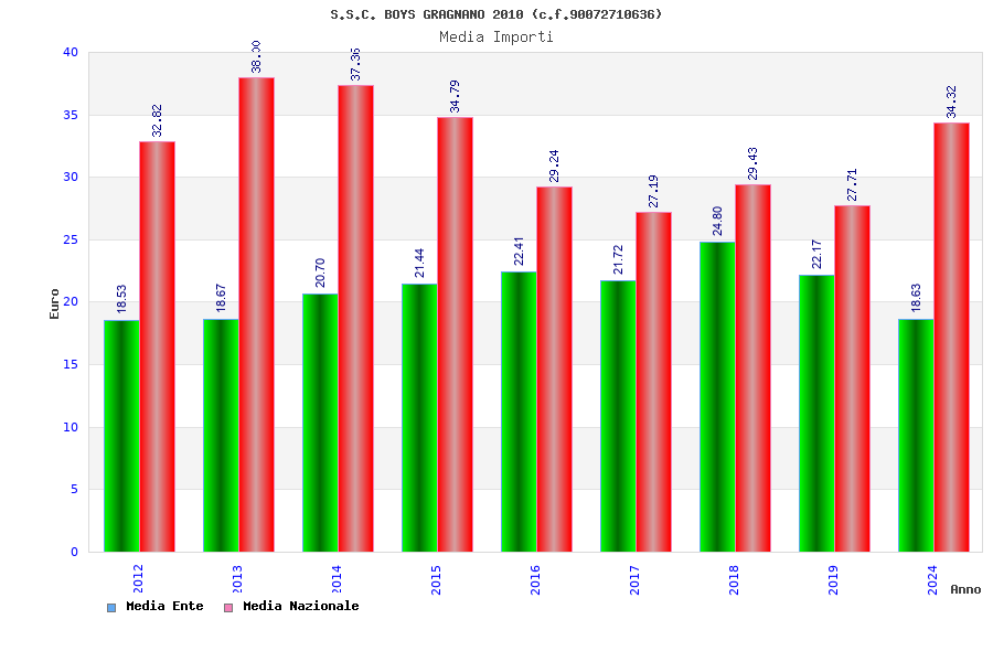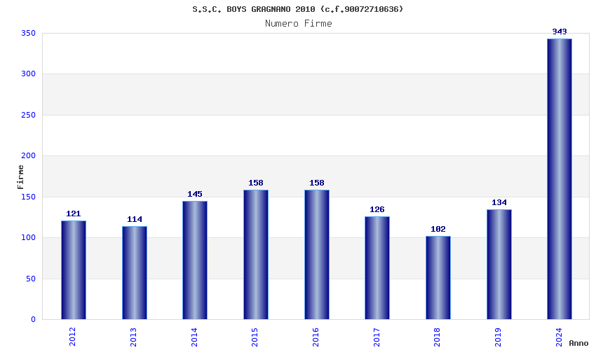 | Anno | Firme | Importi | Media | Naz. | Reg. | Prov. | Comu. |