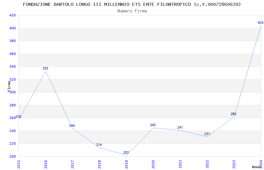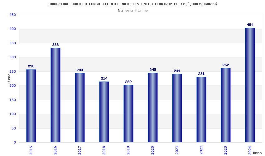 | Anno | Firme | Importi | Media | Naz. | Reg. | Prov. | Comu. |