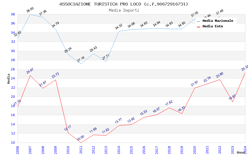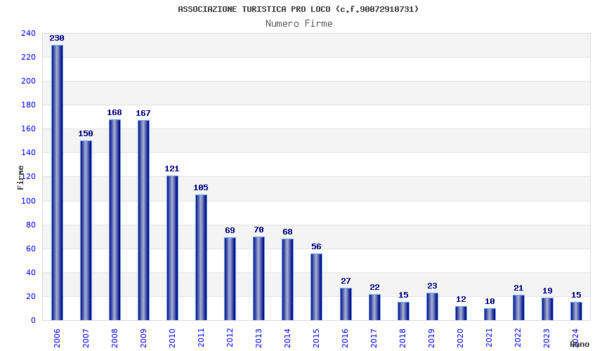 | Anno | Firme | Importi | Media | Naz. | Reg. | Prov. | Comu. |