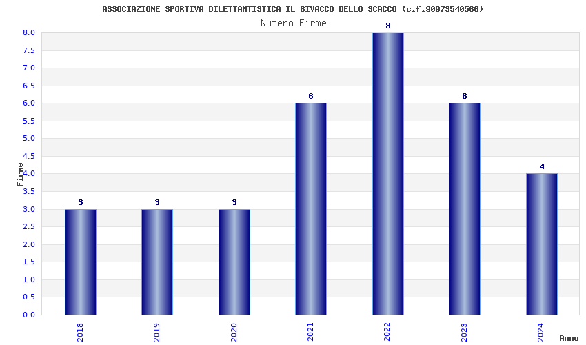 | Anno | Firme | Importi | Media | Naz. | Reg. | Prov. | Comu. |