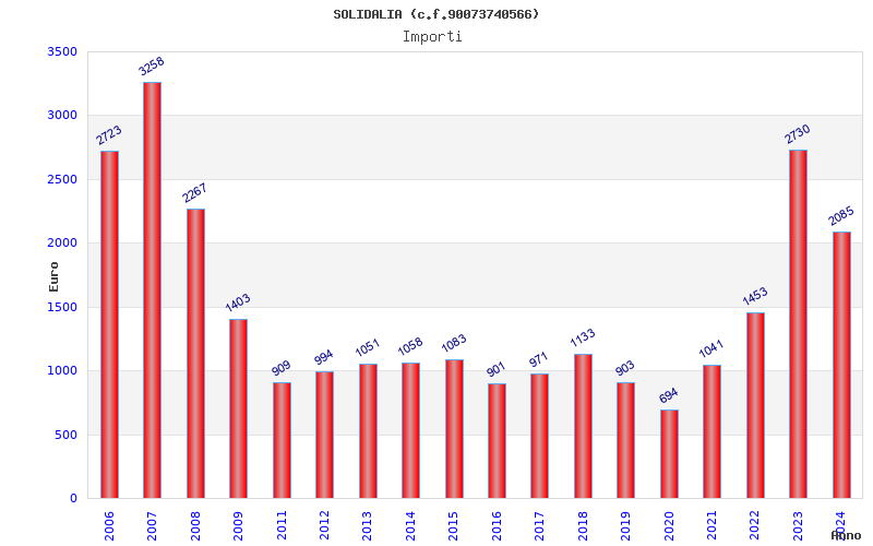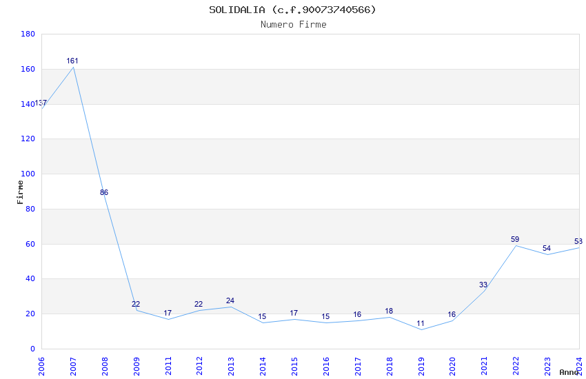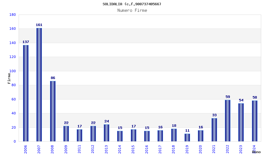 | Anno | Firme | Importi | Media | Naz. | Reg. | Prov. | Comu. |