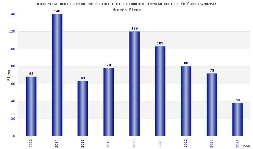 | Anno | Firme | Importi | Media | Naz. | Reg. | Prov. | Comu. |