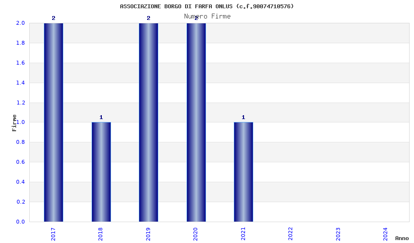 | Anno | Firme | Importi | Media | Naz. | Reg. | Prov. | Comu. |