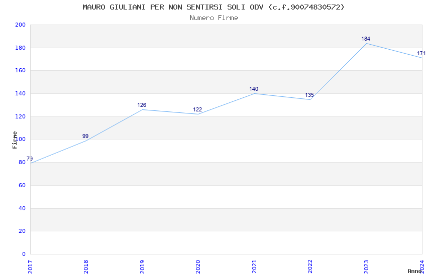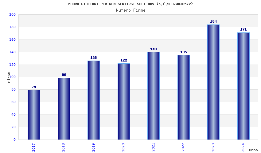 | Anno | Firme | Importi | Media | Naz. | Reg. | Prov. | Comu. |