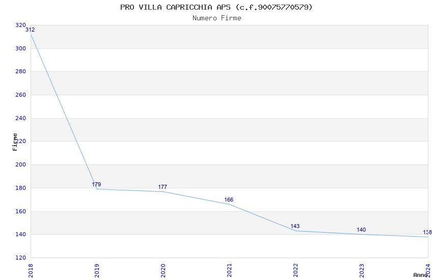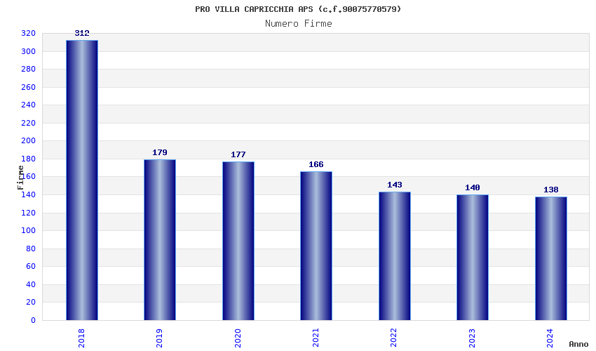 | Anno | Firme | Importi | Media | Naz. | Reg. | Prov. | Comu. |