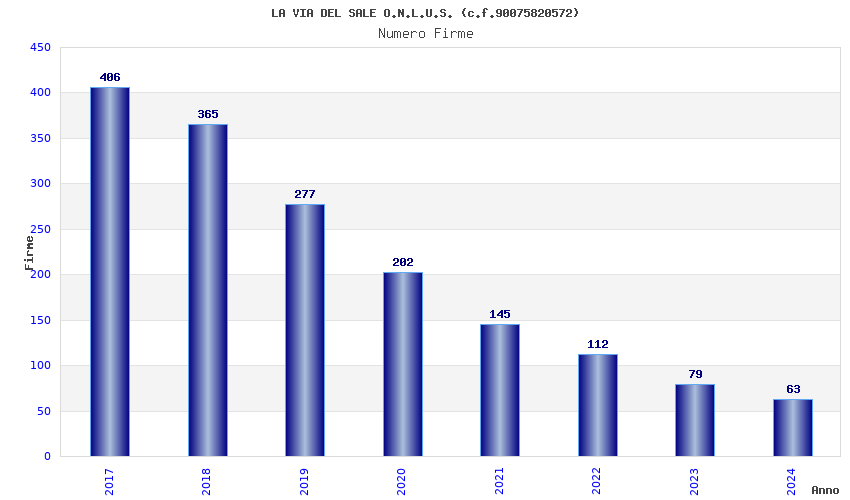 | Anno | Firme | Importi | Media | Naz. | Reg. | Prov. | Comu. |