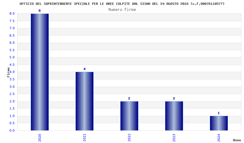 | Anno | Firme | Importi | Media | Naz. | Reg. | Prov. | Comu. |