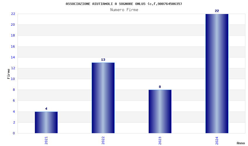 | Anno | Firme | Importi | Media | Naz. | Reg. | Prov. | Comu. |