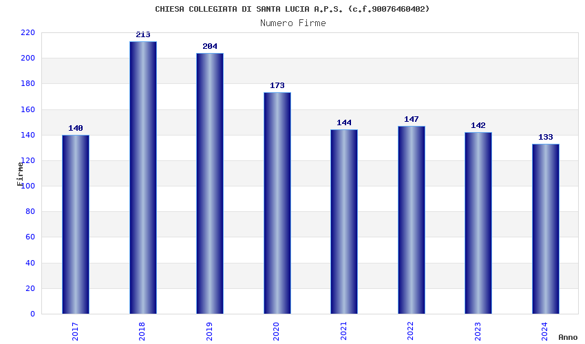 | Anno | Firme | Importi | Media | Naz. | Reg. | Prov. | Comu. |