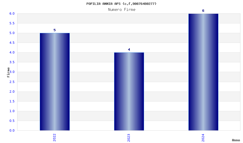 | Anno | Firme | Importi | Media | Naz. | Reg. | Prov. | Comu. |