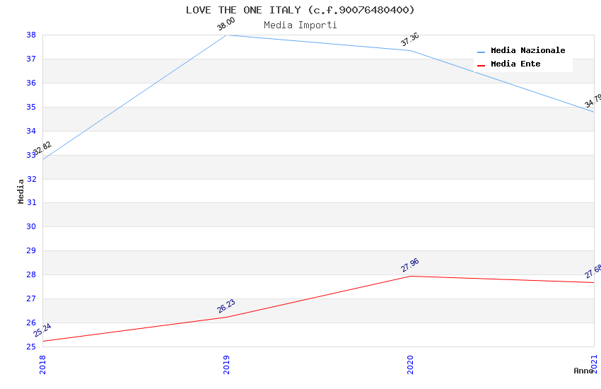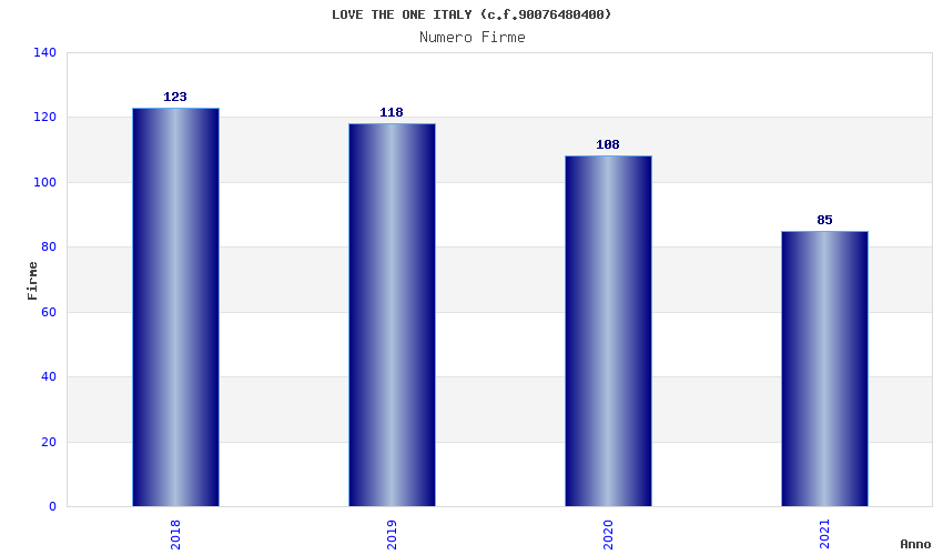 | Anno | Firme | Importi | Media | Naz. | Reg. | Prov. | Comu. |