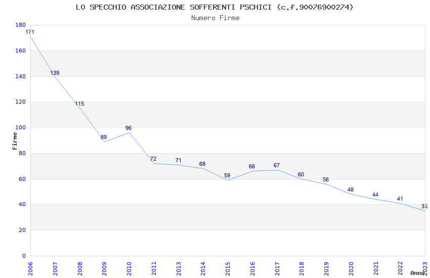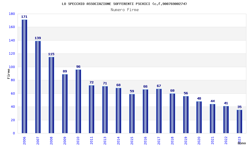 | Anno | Firme | Importi | Media | Naz. | Reg. | Prov. | Comu. |